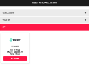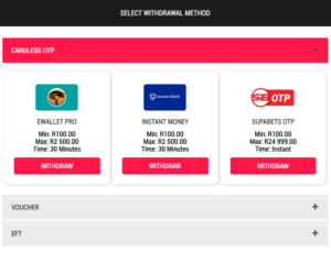 Cardless OTP (FNB eWallet, Standard Bank Instant Money and JACKPOT BETS OTP):
